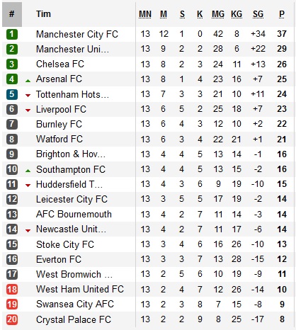 Hasil Lengkap Liga Inggris Pekan Ke 13 Dan Klasemen Sementara Bolalob Com