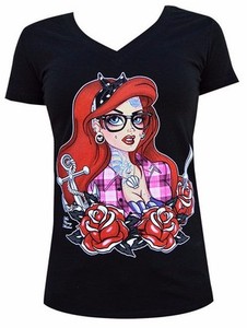 Lowbrow Art Tatoue Sirene Noir T Shirt Col V Tatouage Custom Ariel Chemise S 2xl Ebay